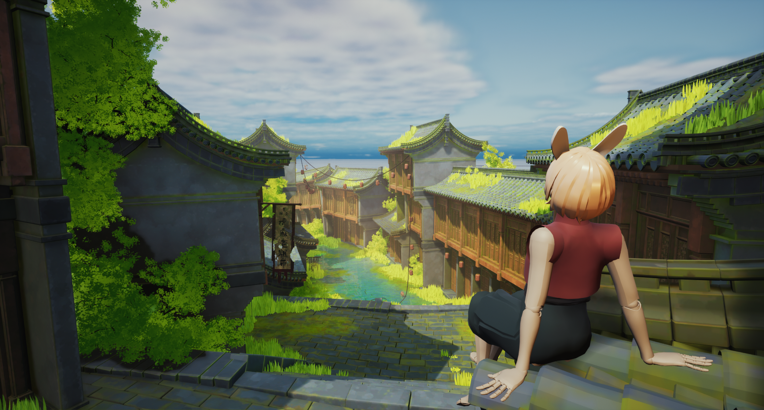 An environment designed for an independent game project of mine exploring a painterly stylized approach. A particular focus has been placed on the storytelling aspect of the environment, exploring the narrative of an oriental-themed post-apocalyptic world covered in water. The scene depicts a moment of relaxation during a scavenging trip at a fragment of an abandoned town, in a world on the verge of being completely scattered and submerged. The architecture of the town is inspired by Western Chinese fishing towns, and the style/mood is inspired by the works of Hayao Miyazaki.
