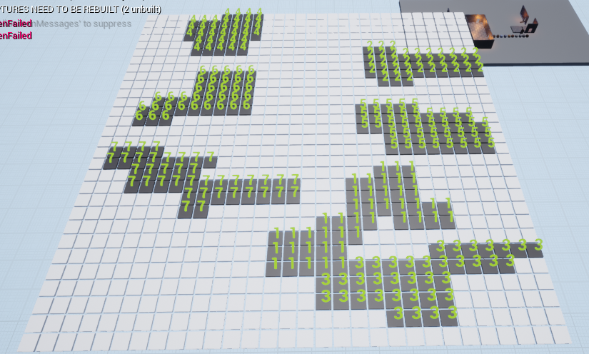 Now it’s time to generate actual mesh for the dungeon floor. An actor called the TileHandler is created on each path tile, and its job is to calculate where and how many walls it should have based on the state of its neighbors.