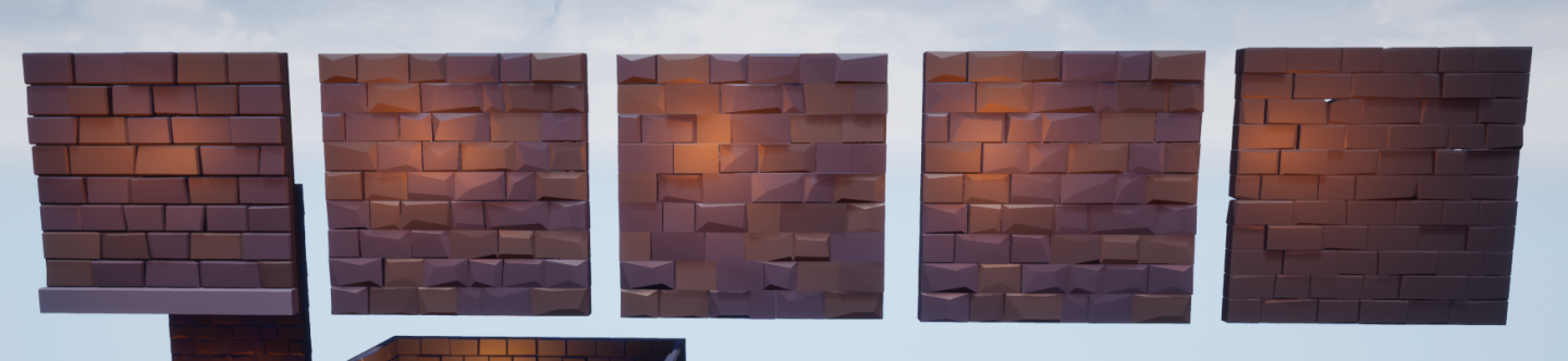 Destructible environment was something that I had in mind from the very beginning when making this project. As the result, I had made sure all of my environmental assets are modeled with full distractibility in mind. The algorithms I have chosen to generate the levels also ensure that there are a lot of hallways/rooms that are only a single wall away from each other, which gives the bomb utility not only in combat but also in creating shortcuts between different areas. In order to not tank my frame rate by spawning the level with each brick being an individual entity, I came up with a cheaper system:
