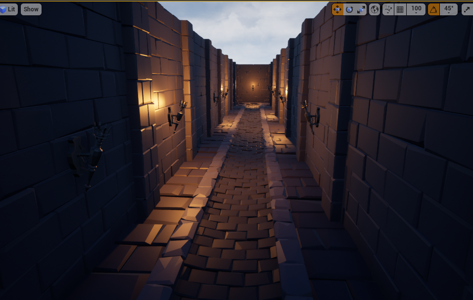 I have eventually settled with the last design as I find it to strike a balance between the other designs. Along with the addition of a new torch that I have modeled in an hour, I have managed to make the hallways of the dungeon look much more complete.