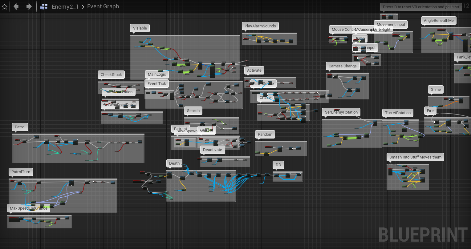 The logic and behavior of all these enemies are coded purely via blueprint, as I was more comfortable with my ability to code complex logic states.